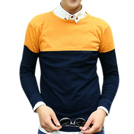 Limited Offer Men's Pullover Cozy Fit Contrast Color Chic Knit Shirt Yellow (Size M / 38) Before Special Offer Ends