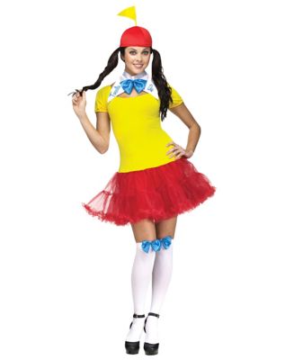 Tempt and torment in the Tweedle Dee Dum Adult Women's Costume