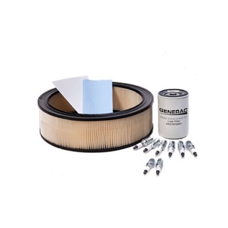 FeaturesIntended for use with liquid-cooled unitsProvided with all necessary accessories and equipment for optimal engine performanceUsed for Generac 5.4L 48 kW standby generators onlyIncludesAir FilterPre-CleanerOil Filter (8) Spark PlugsOil FunnelChamoisMaintenance Reminder Stickers