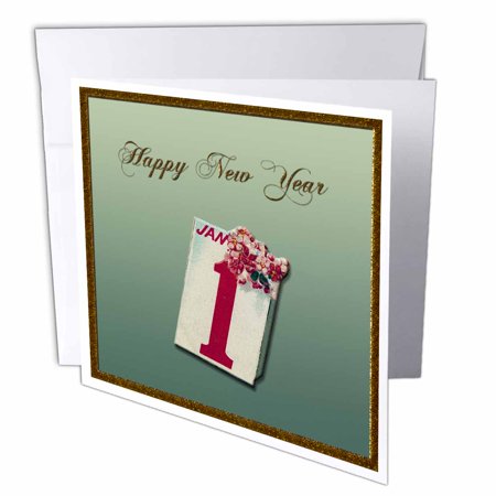 Cheap Offer 3dRose Happy New Year January 1st with Pink Flowers in a Light Green Background Framed in Gold, Greeting Cards, 6 x 6 inches, set of 6 Before Special Offer Ends
