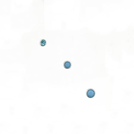 Hotsilver 22G Turquoise Crystal Nose Stud Trio:3 sizes of turquoise crystals: 2.1mm, 1.7mm, 1.4mm3 pieces of nose studsMade of surgical steelFor 22G piercingsEvery piece of Walmart jewelry passes rigorous inspection at our Quality Assurance labs