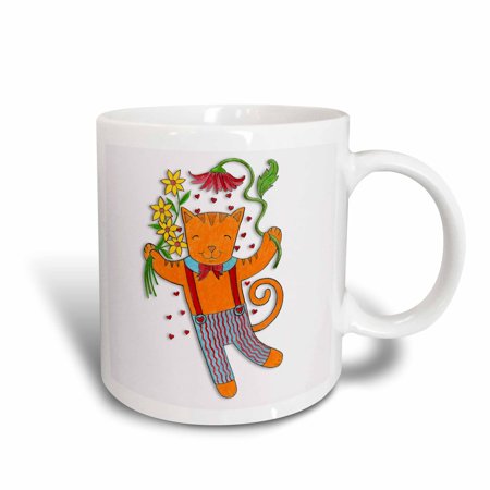 Buy 3dRose Whimsical orange tabby cat with flowers dances in a shower of hearts for Valentines Day, Ceramic Mug, 15-ounce Before Special Offer Ends