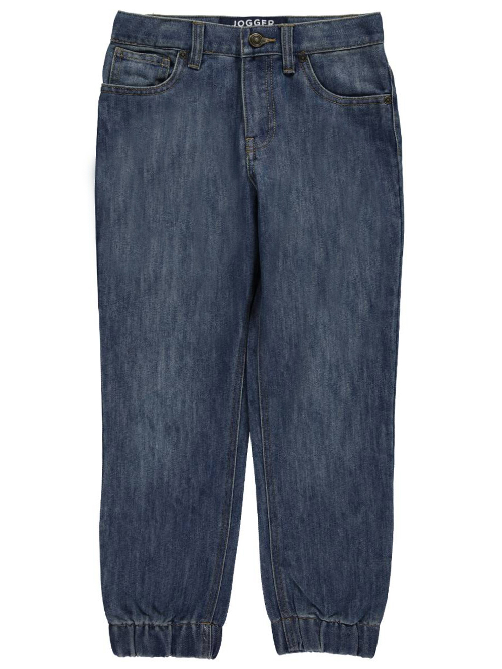 French Toast jogger jeans Denim construction 5-pocket design Adjustable elastic waistband 59% cotton, 41% polyester Machine wash cold Imported