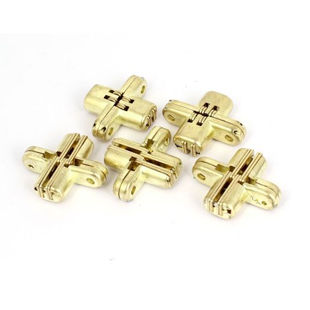 Metal Gold Tone Folding Sliding Door Furniture Cross Hinge 5pcs