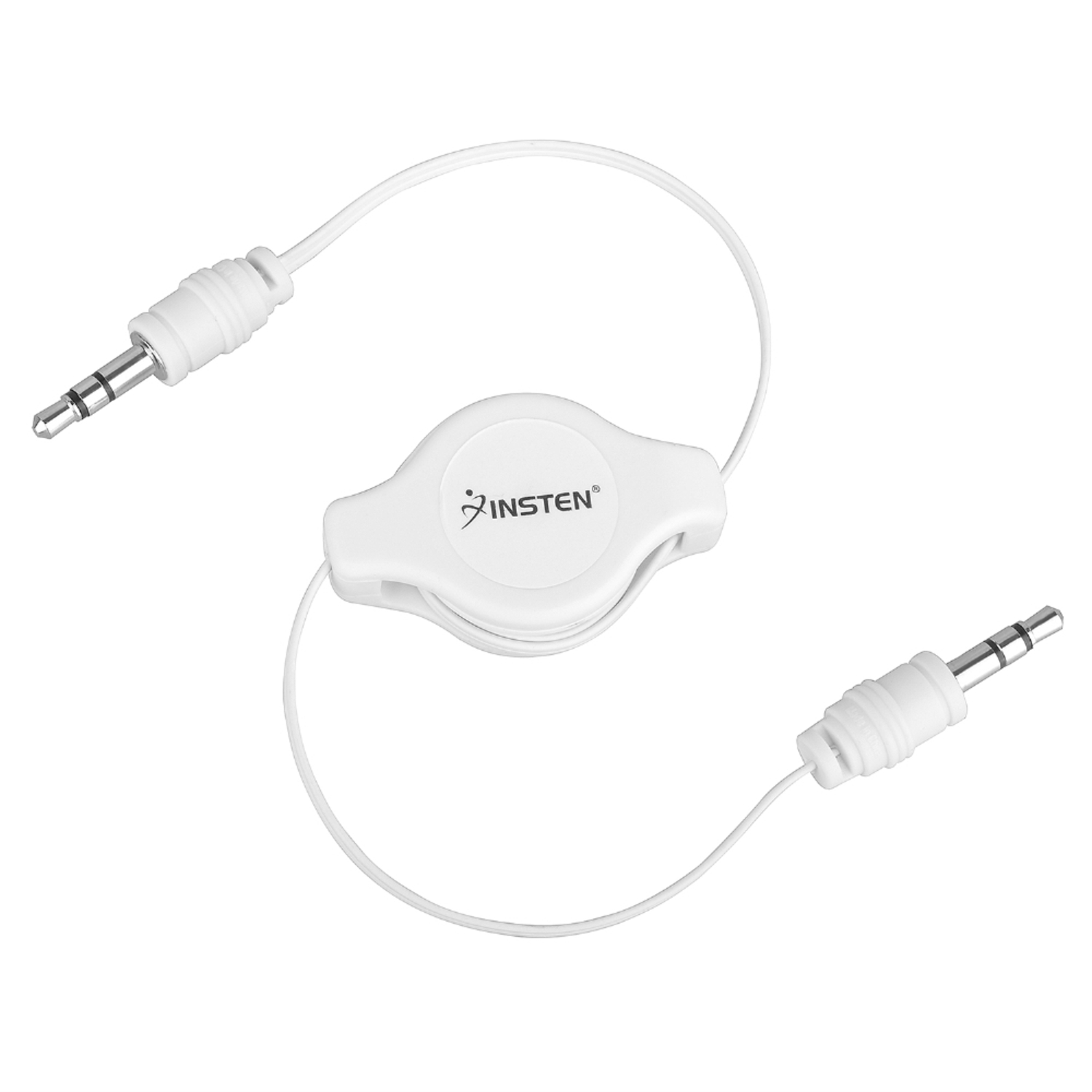 Insten Retractable 3.5mm Stereo Audio AUX Auxiliary Cable M/M For iPhone 6 Plus 5S 4S Samsung Galaxy S7 S6 Edge, White