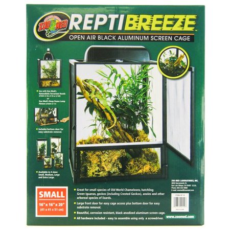 REPTIBREEZE SCREEN CAGE- Open air aluminum screen cage- Great for small species of old world chameleons, juvenile green iguanas, and other arboreal species of lizards- Large front door for easy cage access and bottom door for easy substrate removal- Beautiful corrosion-resistant black anodized aluminum screen cage- All hardware included