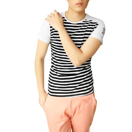 These are related products Men's Short Sleeve Stripes Front Letter Prints Detail Shirt (Size S / 34), it will probably be your best choice as well.