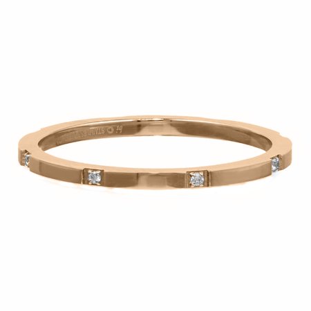 Metro Jewelry Stainless Steel Thin Ring with Rose Ion Plating and Cubic Zirconium